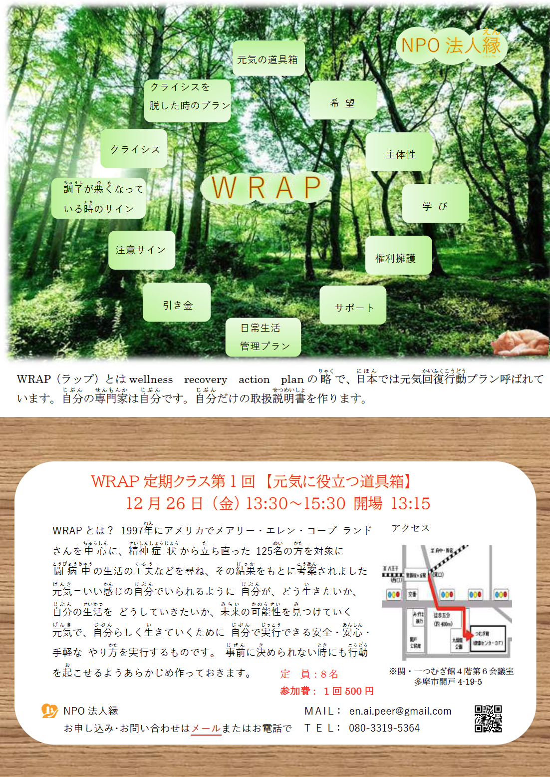 ※WRAPとはアメリカの精神障がい当事者が元気を保つ為に作られたプログラムです。