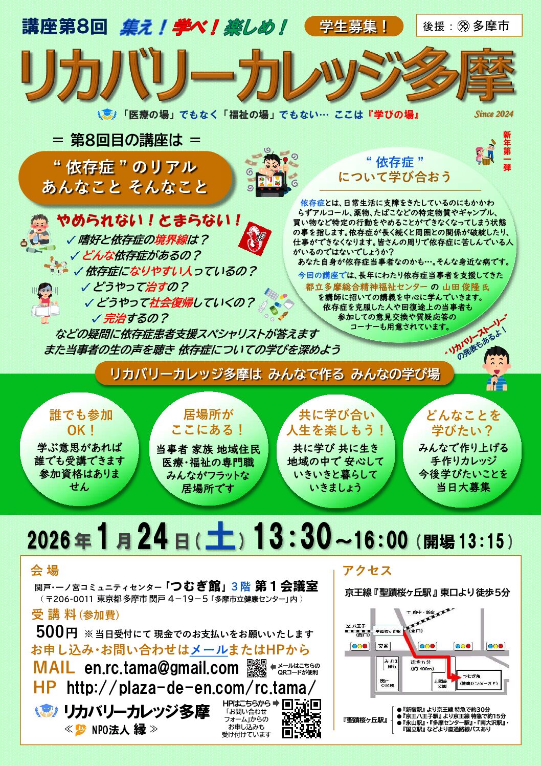 【決定】2026年1月24日、土曜日第八回リカバリーカレッジ多摩講座